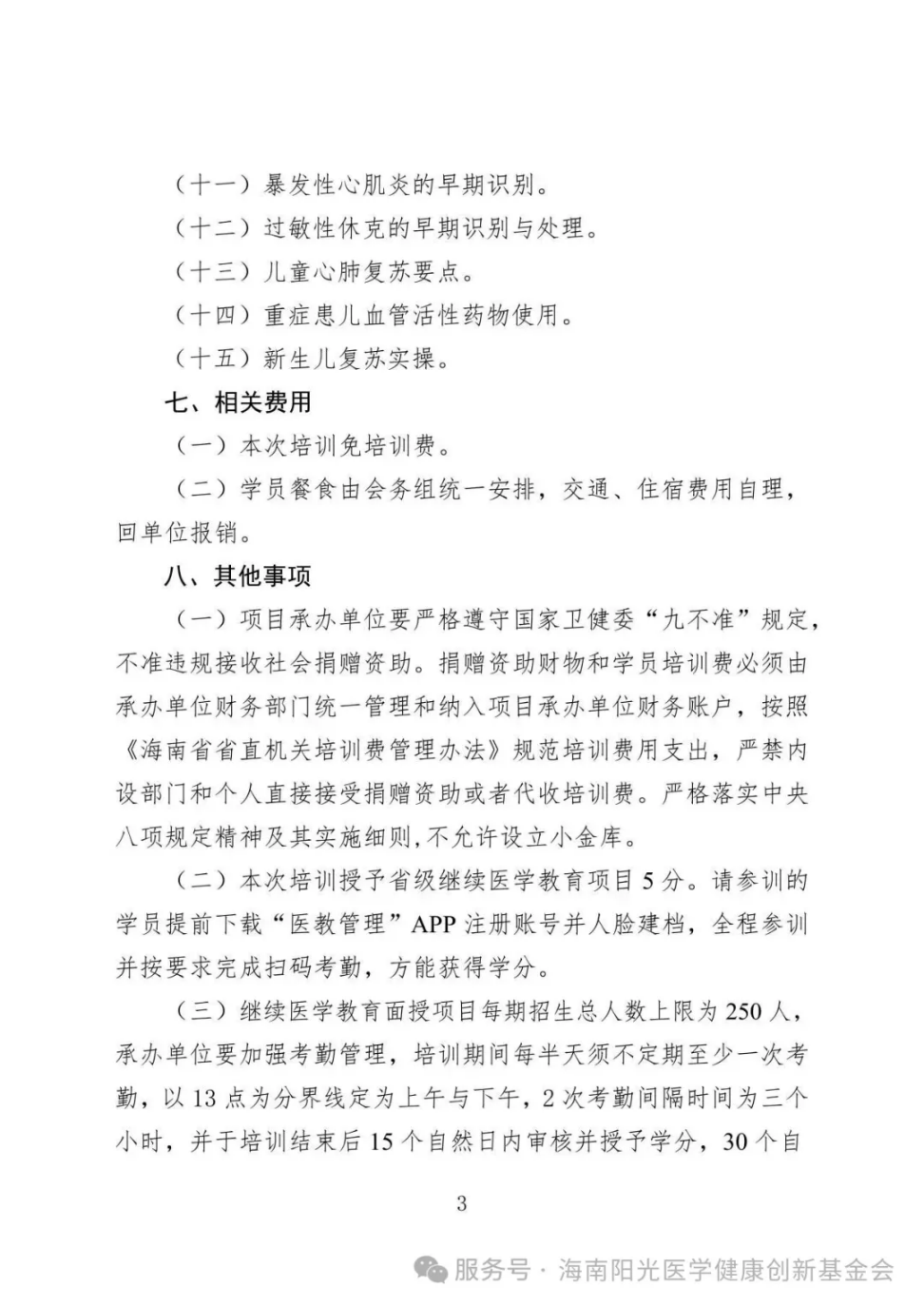 10月11日—12日,由海南医科大学第一附属医院主办、海南阳光医学健康创新基金会协办的省级继续医学教育项目——海南自贸港儿童危重症同质化诊疗培训班将在海口举办。